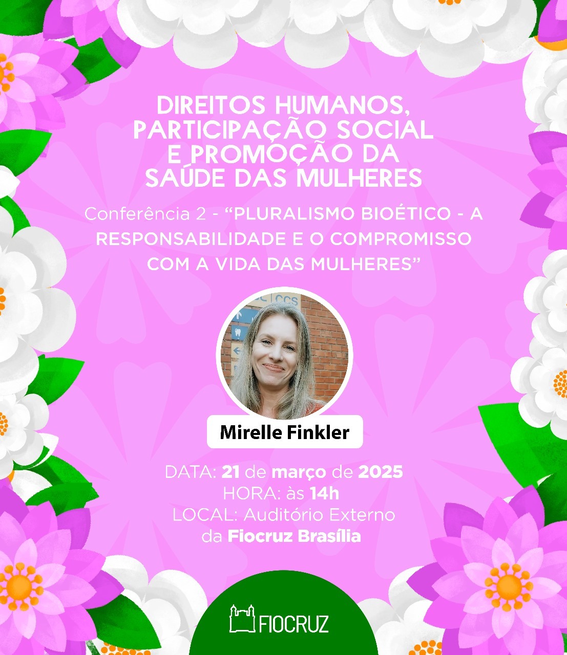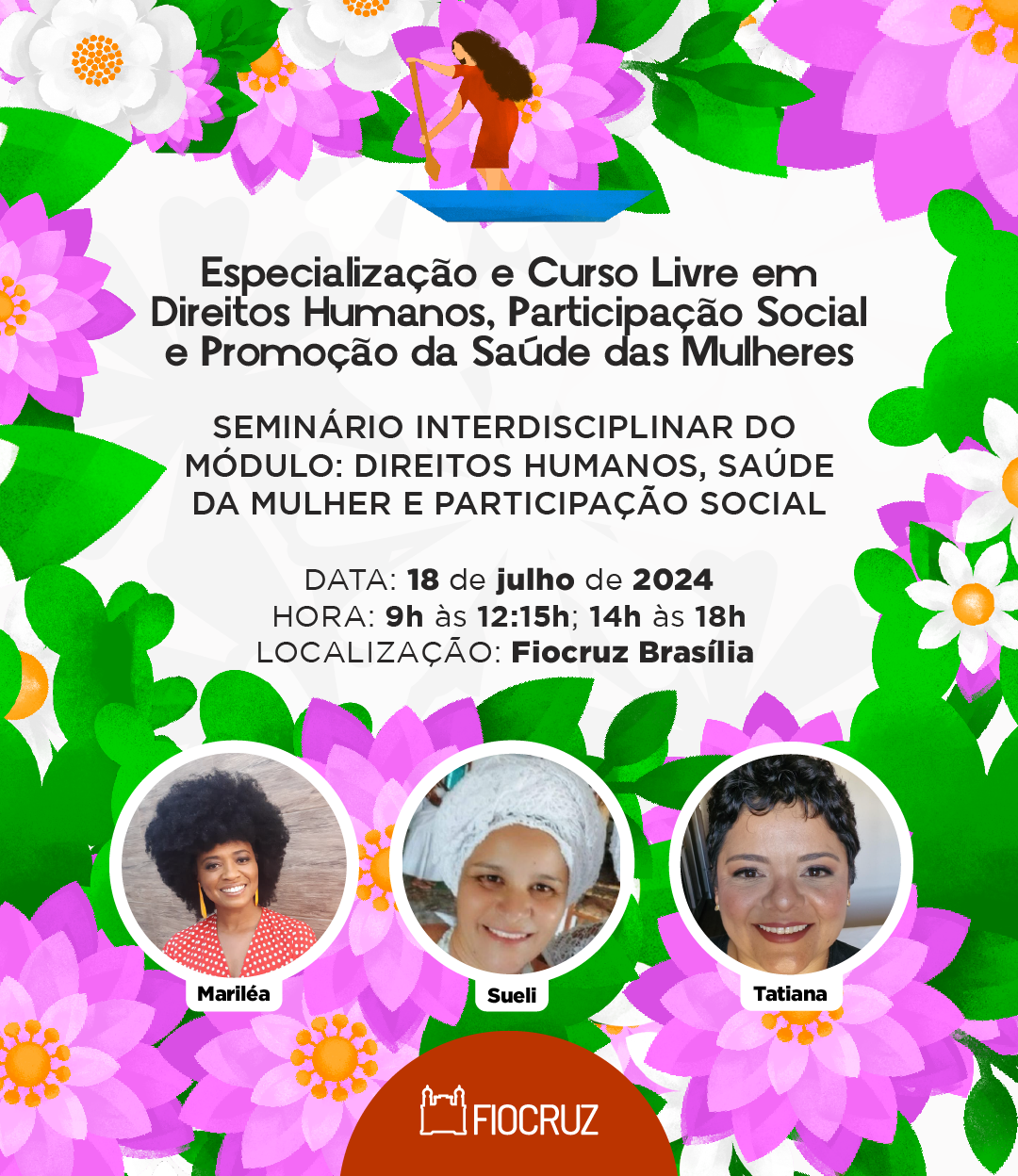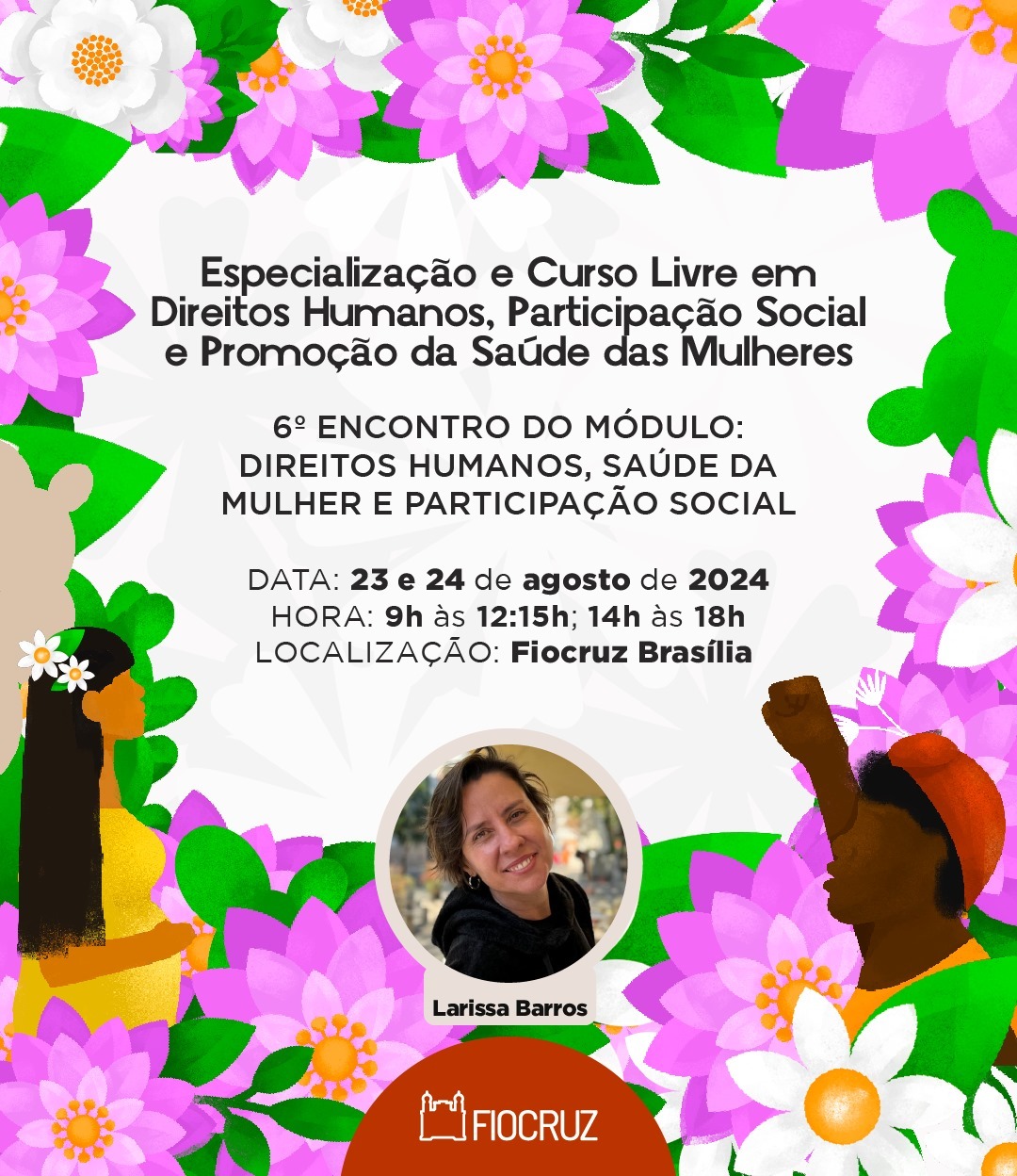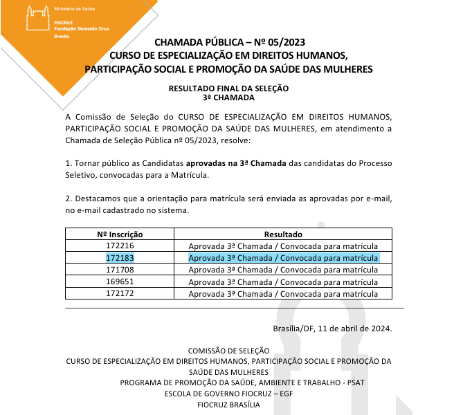 Fui chamada na terceira convocação do processo seletivo para a Pós-graduação em Direitos Humanos, Participação Social e Promoção da Saúde das Mulheres, na Escola de Governo Fiocruz – EGF Fiocruz Brasília!