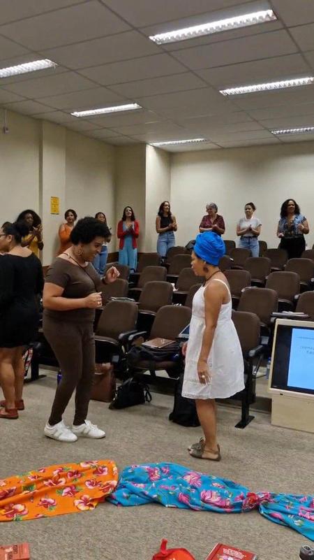 O que mais me tocou foi a presença marcante das professoras que conduziram esse debate. A interseccionalidade ficou ainda mais evidente ao ver como o feminismo negro foi tratado com profundidade e respeito, com a participação da Profª Lia Maria. Suas palavras não trouxeram apenas conhecimento, mas também um chamado à responsabilidade: não há como falar sobre os direitos das mulheres sem considerar raça, classe e território. O que significa ser mulher em um país onde a violência, o racismo e a desigualdade ainda ditam quem sobreviveu e quem é esquecido?
